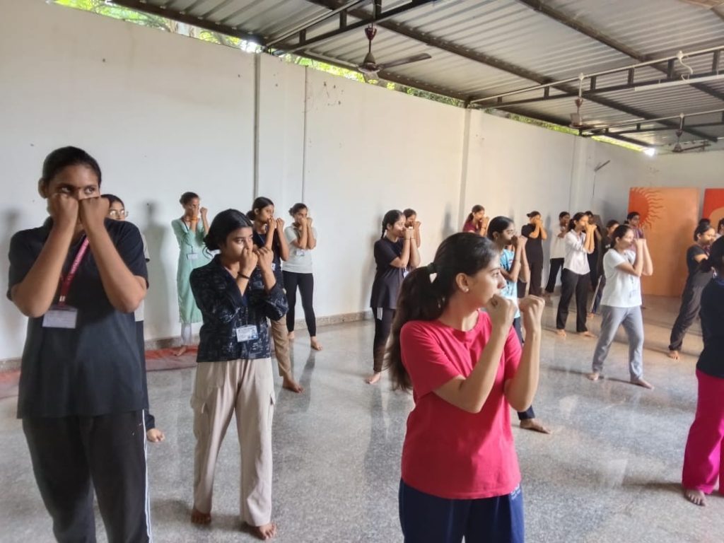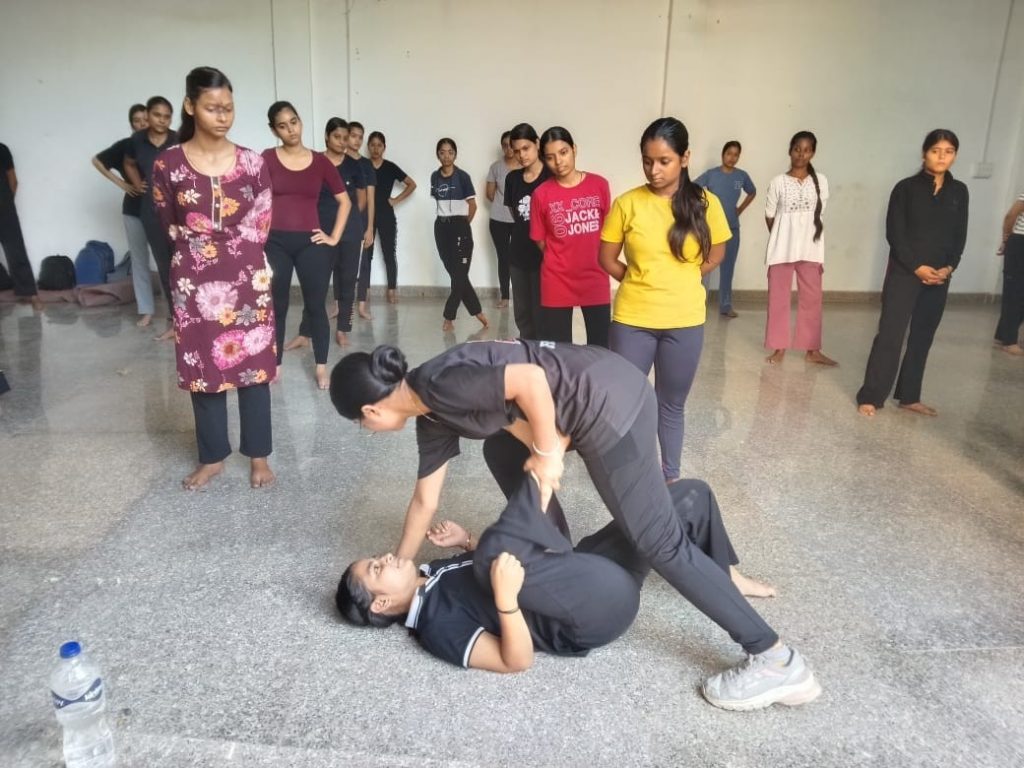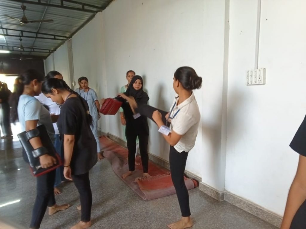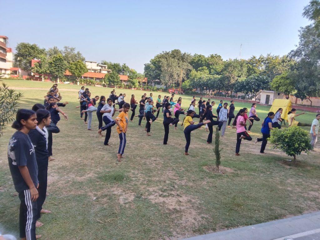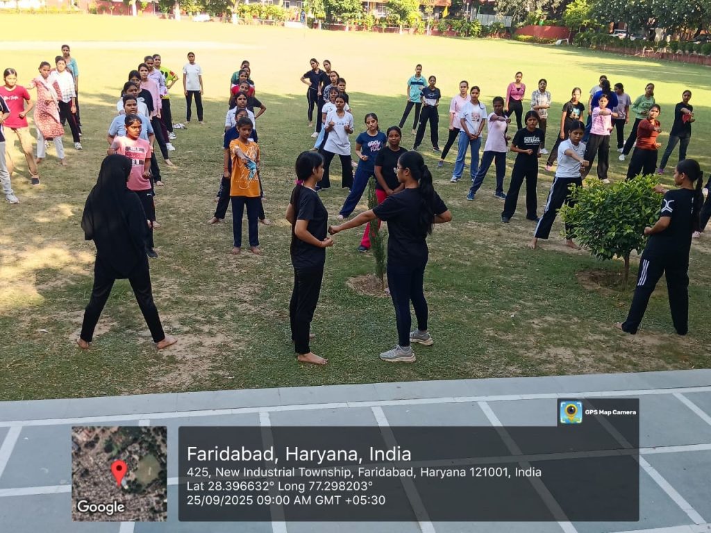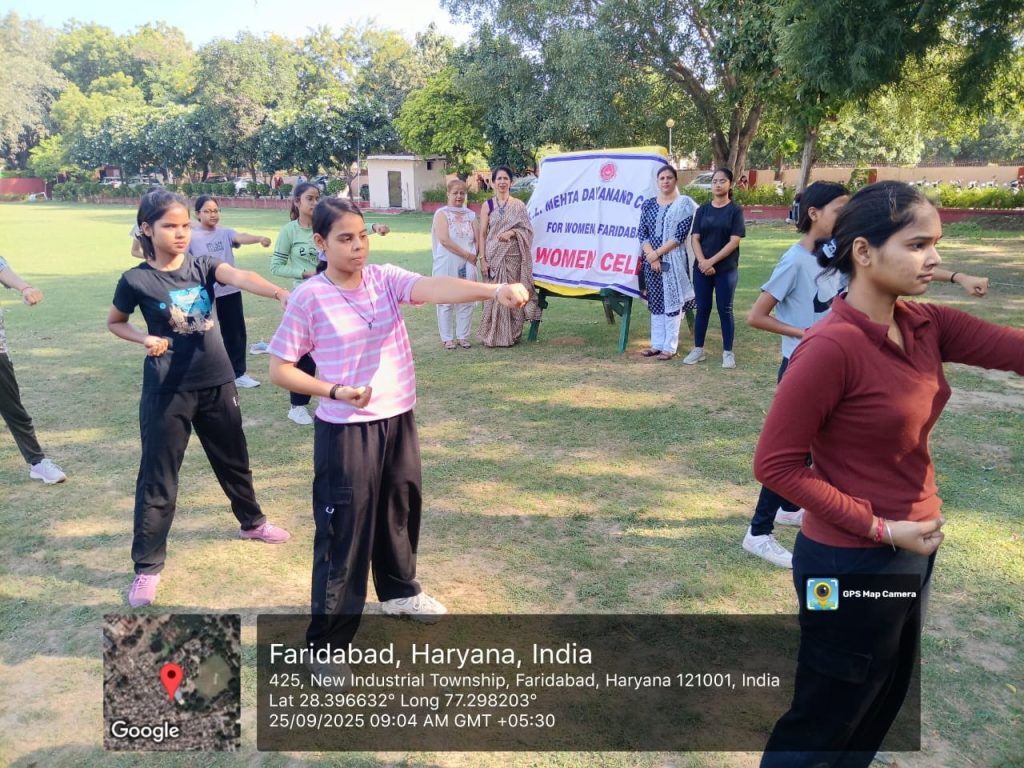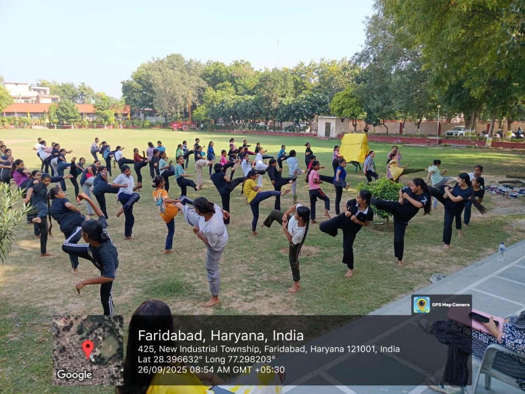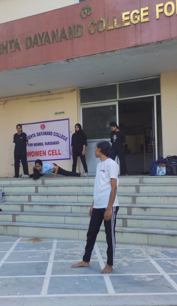 Day & Date: Day 4 (27.09.2025) Venue: Basketball Court Organised by: Women Cell of K. L. Mehta Dayanand College for Women, Faridabad. On 4th day of workshop, Coach Ms. Madhuri Shukla, started the camp with a warm-up session followed by defence block, defence punch, Push kick, slap kick and defence card swipe . Approx. 60 students of women Cell attended the workshop. The event was coordinated by the convener Ms. Madhu Saitya and co- conveners Dr. Babita Singh and Ms. Komal Malhotra. Office Bearers of Women Cell organised the event successfully.