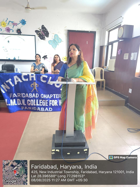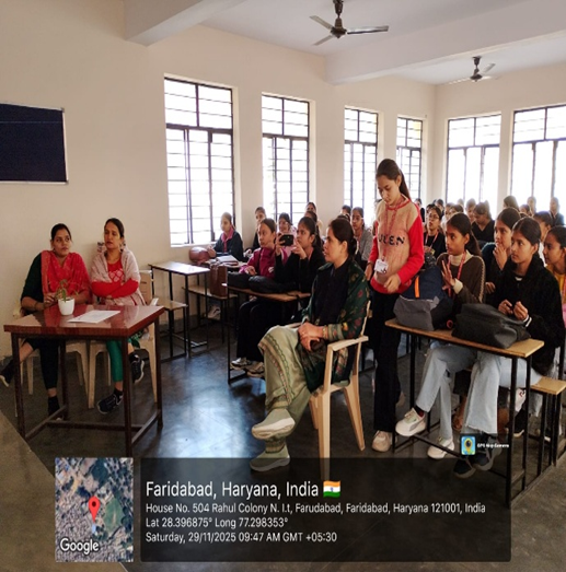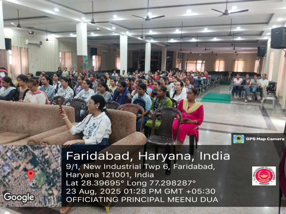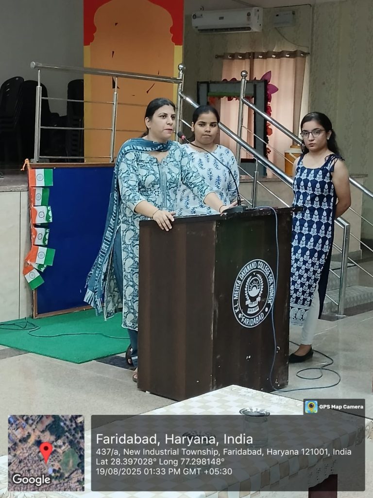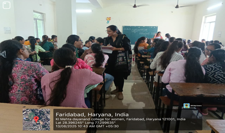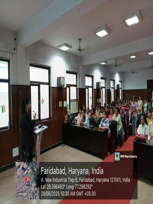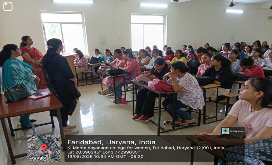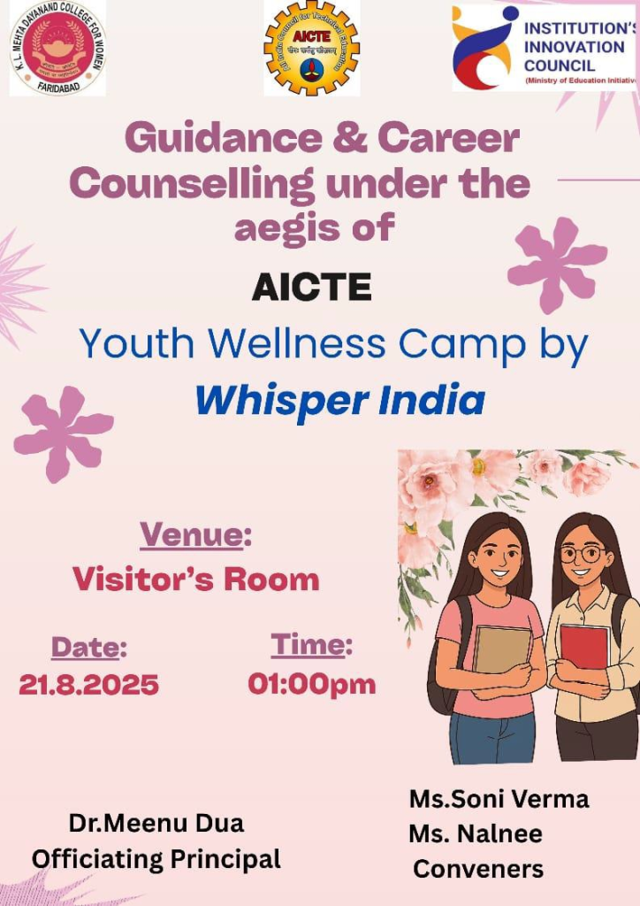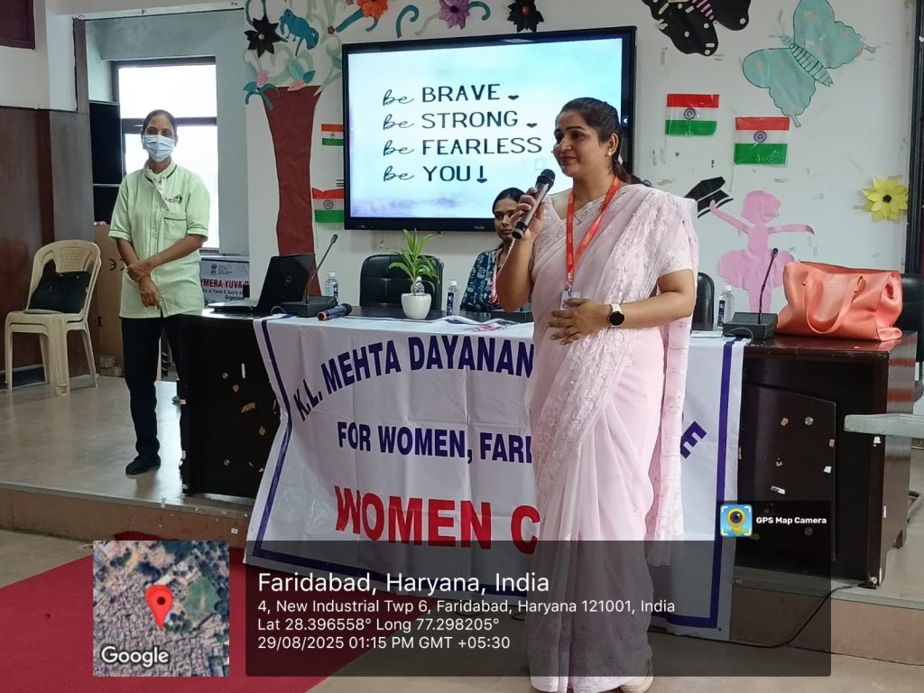Event Details: Theme: Personal Hygiene & Student’s Welfare Organized By:Guidance and Career Counseling Cell In Collaboration With: Whisper India Under the Aegis of: AICTE & IQAC Venue: K.L.Mehta Dayanand College, FaridabadVisitor’s room Date: 21/08/2025 Dignitaries Present: Patron: Dr. Meenu Dua(Officiating Principal) IQAC Coordinator: Ms. Amita Dureja Head, Guidance and Career Counseling Cell: Dr. Neha Jain Convener: Ms. Soni Verma and Ms. Nalnee