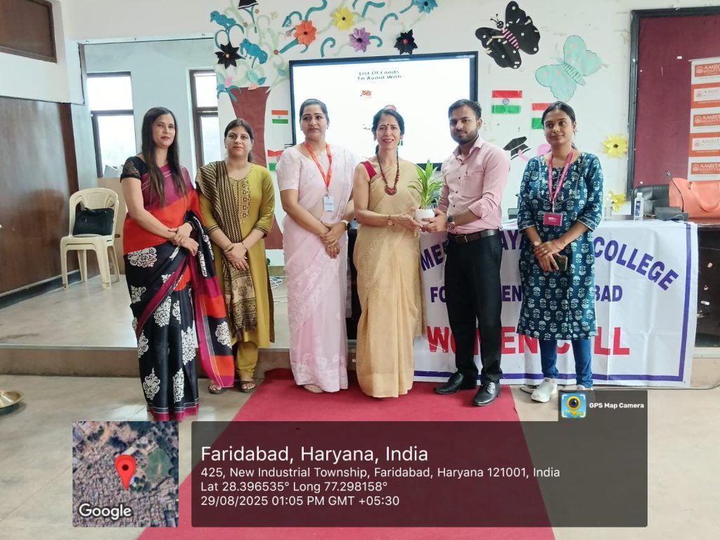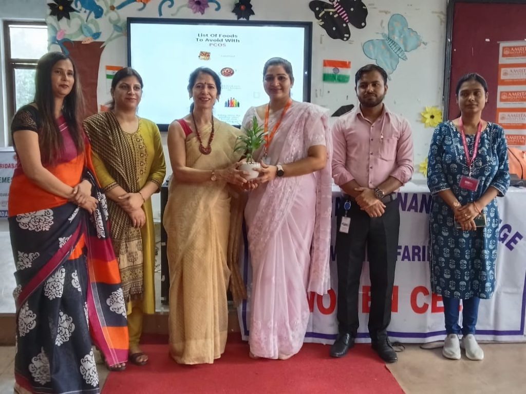 The event was graced with the presence of Principal Mam Dr. Meenu Dua and convened by Ms. Madhu Saitya (Convener), Dr. Babita Singh and Ms. Komal Malhotra (Co-conveners). The programme was co-ordinated by the office bearers of Women Cell.The resource person for the session was Dr. Mansi Kumar, Associate Professor and Senior Gynecologist from Amrita Hospital. She delivered an informative and engaging session on PCOD and PCOS, covering its causes, signs and symptoms, diagnosis, and management of these common yet often neglected issues. Dr. Mansi explained the difference between PCOD and PCOS in a simple manner, and emphasized that early diagnosis and lifestyle modification play a crucial role in managing these conditions. She also highlighted the long term health implications of these issues if left untreated. The session was highly interactive.