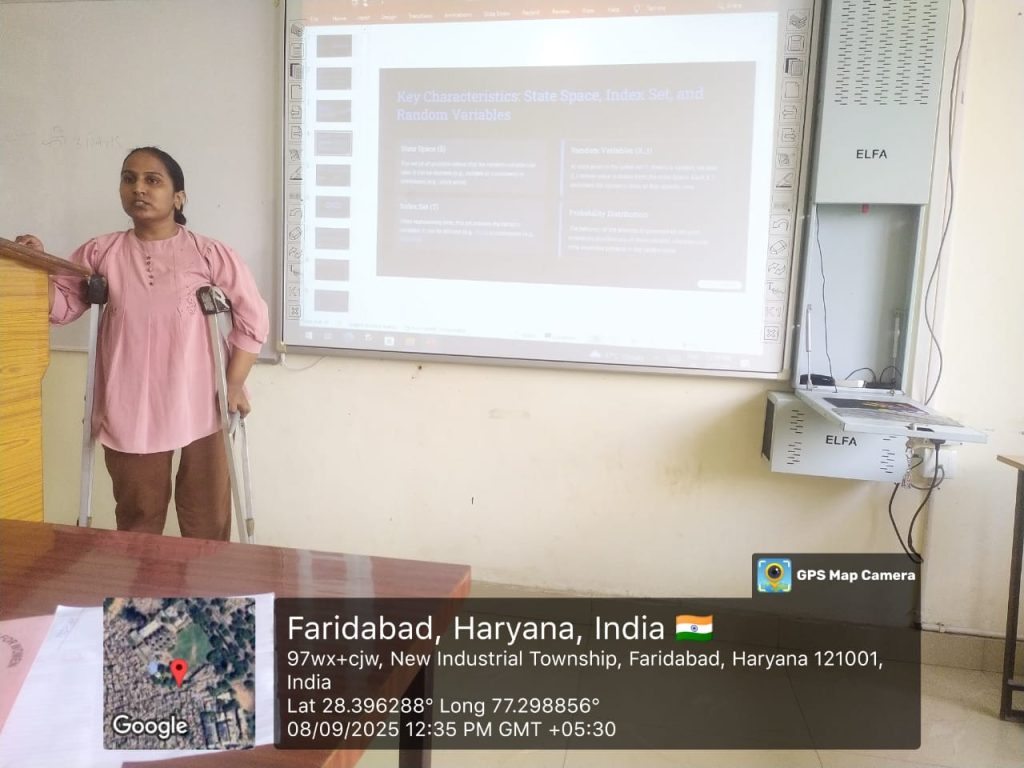 The Department of Mathematics organized an Expert Talk on topic “Applicative Aspects of Reliability Theory” by Dr. Reena Garg ( Assistant Professor) J.C.Bose University,YMCA faridabad under the guidance of respected Principal Dr.Manju Dua and HOD Dr.Meenu Dua. Around 70 students from M.Sc(Maths) and B.Sc (Non medical) students were present there and interacted with resource person.The talk was on reliability, maintanability and availability which were wonderfully explained by Dr. Reena Garg. She effortlessly explained how system is reliable.Mam told to students how we can calculate warranty of any appliances by using Mathematical Modelling.The session was completed by questions answer session. Our head Dr. Sheel Singh appreciated team work of our department and were present during the whole talk. The session ended by giving Vote of thanks. All staff present during whole talk.