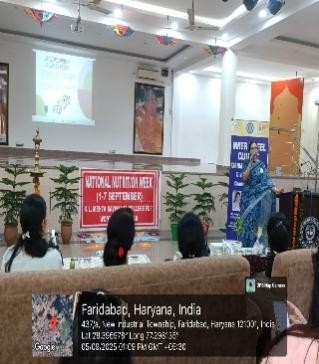 National Nutrition Week Celebration Date: 7/9/2025 The Department of Home Science of K.L. Mehta Dayanand College for Women, Faridabad, in collaboration with the Inner Wheel Club of Faridabad Central, organized the celebration of National Nutrition Week with great enthusiasm and zeal. The event commenced with the Lamp Lighting Ceremony, signifying the victory of knowledge over ignorance. The dignitaries warmly welcomed were Mrs. Renu Thakkar, President of the Inner Wheel Club, Ms.Kamalpreet Verma (Retired Associate Professor) and other members of the club.Dr.Meenu Dua mam ,Principal of the College graced the occasion by her esteemed presence.Dr.Sangeeta Kulshrestha, Head of the Department of Home Science left no stone unturned in preparation of the event.Dr. Sangeeta felicitated Dr. Kamal with the sapling and praised her contributions during her teaching period. The program was further enriched by the gracious presence of Senior Faculty Member, Ms. Archna Dua, who motivated the students with her valuable guidance and encouraging words. The highlight of the celebration was an insightful Health Talk delivered by Ms. Priyanka Pawar on “Curing Diseases through Diet ” where she emphasized the importance of nutrition in maintaining health and preventing lifestyle-related diseases such as diabetes, hypertension, obesity, and cardiovascular diseases. She emphasized the importance of living, wholesome, Plant based and water based foods which ae locally available foods over processed items.Ms. Priyanka, besides assistant professor in department of Homescience is alumni of the college too. The Health Talk was highly appreciated by the Principal, faculty members, and the students. It not only enhanced awareness about the significance of nutrition but also inspired the audience to adopt healthier food habits as a preventive and curative approach to diseases. To engage the students and encourage their creative skills, competitions were organized, which included: 1) Poster Making Competition – Students showcased their artistic skills and conveyed meaningful messages on the importance of nutrition through posters.The competition was judged by Dr.Annu Kalra and Dr.Mamta 2) Healthy Recipes Competition – Students prepared innovative and nutritious dishes, highlighting the value of balanced meals in maintaining good health. The competition was judged by Dr.Shveta Arya and Ms.Avneet Kaur. Ms. Avneet, visiting guest teaching faculty too is alumni of the college. The entire stage program was skillfully conducted by Ms. Benu Mehta and Ms. Priyanka Pawar ensuring smooth coordination throughout the event. Dr. Sangeeta Kulshrestha also shared a few motivating words, inspiring the students to adopt healthy food habits in their daily lives. To make the celebration more engaging and interactive, a Nutrition Quiz with the audience was conducted. The quiz tested students’ knowledge about healthy eating habits, nutrients, and lifestyle-related health issues. The lively participation and quick responses reflected the keen interest of the students in the subject. At the end of the program, the winners of various events, including Poster Making, Healthy Recipes Competition, and the Nutrition Quiz, were honored during the Prize Distribution Ceremony. The dignitaries presented certificates and prizes to the winners, encouraging them to continue their efforts towards promoting health and nutrition awareness. Ms.Sujata and Ms. Pooja too contributed towards decorations with great enthusiasm. The event concluded with a heartfelt vote of Thanks proposed by Dr. Pragati Chitkara who expressed gratitude to the Principal, dignitaries, faculty, students and the Inner Wheel Club for their valuable contribution in making the event a success.