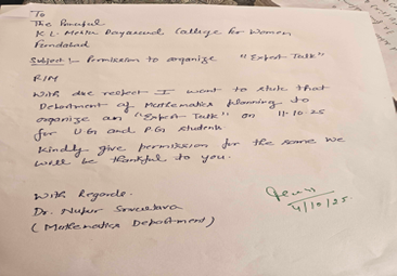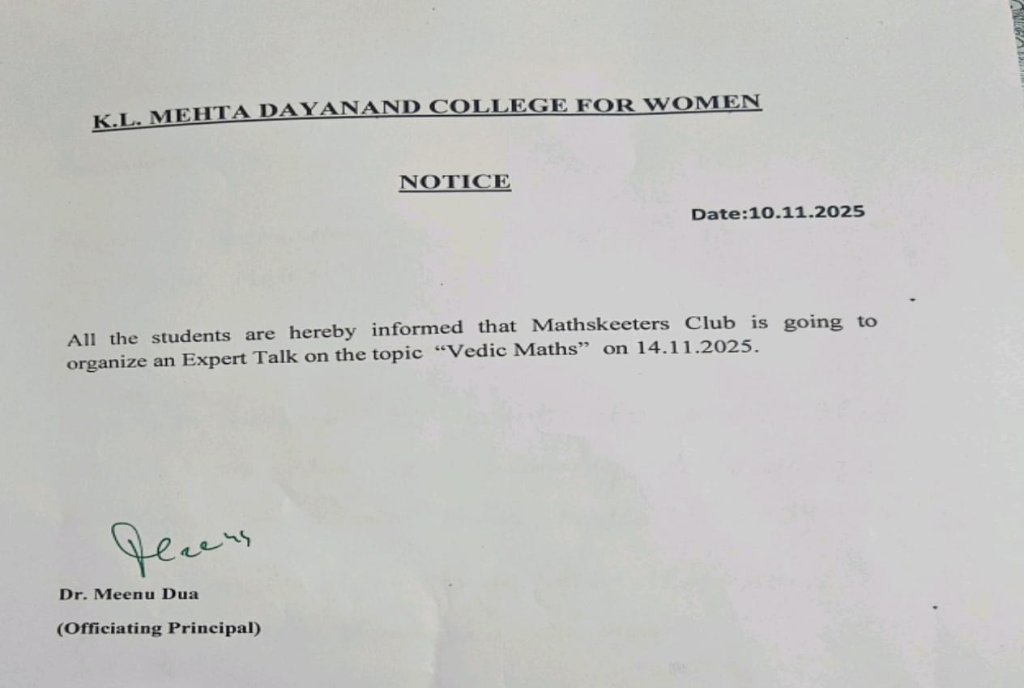 *Date:* [14.11.2025] *Patron* Dr. Meenu Dua *Resource Person:* Ms. Vandana Kumari *Convener* Dr. Beena Sethi *Co-Conveners* Dr. Sonam Ahuja, Dr. Nupur Srivastava *Organizers:* Mathskeeters Club *Objective:*
