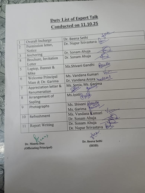 It was an interactive session.Principal Ma’am Dr. Manju Dua always appreciates this kind of programs. Convener Dr. Neha Jain and Co-conveners Dr. Monika Singla and Ms. Rachna Poswal organised the whole event.