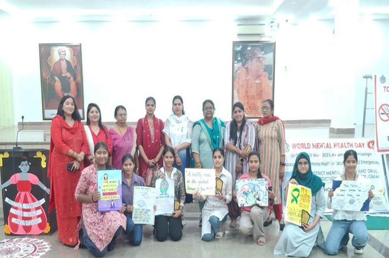 ‘World Mental Health Day’ was observed on 10th October in our institution to spread awareness about the importance of mental wellbeing. The event was organised under the guidance of our respected Principal Dr.Meenu Dua. A special team of medical representatives (Ms Preeti Yadav) and (Ms Sumantra) from B.K Hospital was invited to interact with students and highlight the significance of maintaining good mental health in everyday life. The session focused on breaking the stigma around mental health issues and encouraging students to speak openly and seek help when needed. The Resource persons also shared practical tips for stress management and emotional well -being. To encourage student’s participations and creativity, a slogan making competition was organised on the theme Mental Health. Many students actively participate and express their thoughts through powerful and meaningful slogans.1st prize in slogan writing was given to Kulsum from B.Sc Biotech, 2nd was given to Payal Bhadana from B.A 2nd yr and 3rd was given to Chhavi from Bsc life Science 1st year. The event was conducted by the YRC Councellor Dr.Shveta Arya and Councelling & Mental Health Support Cell Members Dr. Mithlesh Aggarwal, Dr.Veena Pani(Nodal Officer), Dr.Neha Jain and Ms Kritika Vaid(Coordinator). Students enthusiastically participated in the Mental Health awareness rally carrying slogans that promoted positivity, self-care and emotional strength. Dr.Anand Mehta, Chairman of (MDES), and the Principal Dr. Meenu Dua were also present in the rally. The rally aimed to encourage open discussions about mental health and to remove the stigma surrounding it. YRC Councellors Dr. Shveta Arya and Dr. Babita Sharma were also present in the program. The event Concluded with the vote of thanks to guest and participants for making the program successful. Overall the day served as a reminder that Mental Health matters as much as physical health and everyone has a role to play in creating a supportive environment.