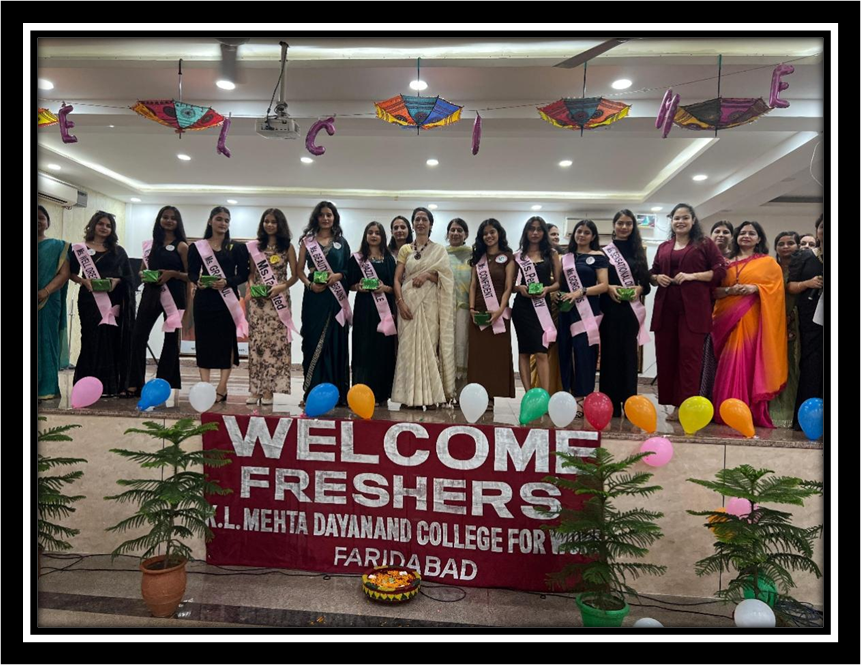 K.L. Mehta Dayanand College for Women, Faridabad, hosted its Freshers’ Day Celebration on September 6, 2025, in the college auditorium. The event was a formal welcome to the newly inducted students of the academic session 2025-26. The ceremony commenced with the ceremonial lamp lighting by the esteemed Chief Guest, Mrs. Shubh Mehta, Director (Self Finance), accompanied by senior faculty members and judges of the event. Principal Dr. Meenu Dua extended a warm welcome to the Chief Guest and presented her with a sapling as a token of appreciation. In her address, Mrs. Shubh Mehta encouraged the freshers to establish clear objectives, seek mentorship, and strive for excellence. Principal Dr. Meenu Dua emphasized the significance of diligence, discipline, and the integration of traditional values with modern perspectives. Her leadership and support played a key role in making the event a memorable experience for the new students. The highlight of the event was the Ramp Walk Competition, comprising three rounds: Ramp Walk, Self-Introduction, and Talent Showcase. The winners were: