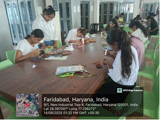 Kala sangam club of Home science department organized a skill enhancement workshop by fevicry hobby ideas. The workshop focused on teaching students how to make folders and envelopes and how to decorate them using various textures, tints and shades .Ms. Archna Dua (HOD), Home Science warmly welcomed the resource person Ms. Reena Malik (instructor from fevicryl).The event was attended by other faculty members of the Home science department such as Dr. Sangeeta Kulshrestha, Ms. Benu mehta, Ms. Priyanka, Ms. Jyoti and Ms. Sujata, who showed their support and encouragement to the participating students. Around 28 students participated in the workshop. Ms. Reena Malik provided a comprehensive demonstration on crafting the folders and envelopes, guiding the students through each step with precision. She introduced them to different methods of applying textures, enhancing the aesthetic appeal of their creations.The workshop was a hands-on experience, allowing students to explore their creativity while learning valuable skills in crafting and design. By the end of the session, the participants had successfully created beautifully decorated folders and envelopes, each reflecting their unique touch and creativity. Heartfelt thanks was extended to our Principal ma’am Dr.Manju Dua for her unwavering support and encouragement, which greatly contributed to the success of the workshop.This workshop was another successful event by the Home Science Department, contributing to the students’ skill development in art and craft.