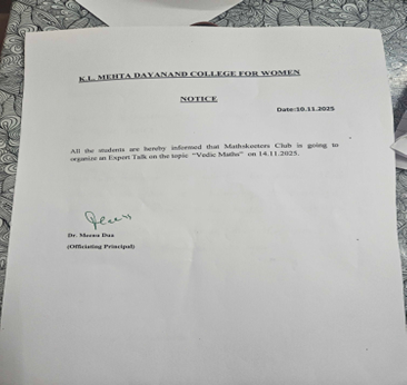 This workshop aimed to introduce participants to the ancient Indian system of mathematics, its principles, and techniques. The workshop sought to enhance mental calculation skills, improve problem-solving abilities, and foster a deeper understanding of mathematical concepts. *Overview:* Under the guidance of Respected Principal, Dr. Meenu Dua, Mathskeeters Club has organized a One Day Workshop on Vedic Mathematics. Club Incharges & HOD of Science Department Dr. Beena Sethi welcomed the Resource person Ms. Vandana Kumari with a sapling as a token of gratitude. 50 Students attended the workshop with full enthusiasm for learning the basic tricks of mathematics that will help them in their real life calculations & competitive exams too. Worksheet Link was also shared with students to practice the tricks taught in workshop.Students expresssed a high level of satisfaction with the workshop content, facilitation, and organization.During whole workshop all faculty members of Mathematics Department were present .The Session was smoothly conducted by Dolly & Sakshi ( president & vice president of mathskeeters club). *Conclusion:* The Vedic Maths One-Day Workshop was a resounding success, providing a valuable learning experience for participants. The event demonstrated the potential of Vedic Maths to enhance mathematical skills and foster a deeper appreciation for ancient Indian knowledge systems. *Vote of Thanks:* The organizing committee extends its gratitude to the Resource person, participants, and college administration for their support and cooperation in making the workshop a success.