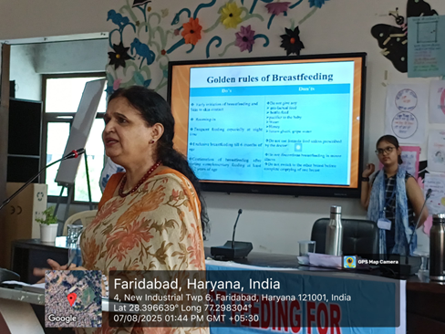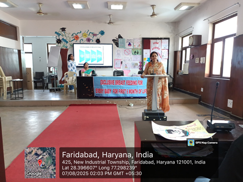 K. L Mehta Dayanand College for Women Faridabad organised world breastfeeding week on 3 August 2024. The program was inaugurated by our respected Principal ma’am (Dr.Manju Dua).The program included intra-college slogan writing competition on the theme closing the gap, Breastfeeding support for all. Student from different departments took part with great enthusiasm. In total 34 students participated in competition. After this competition Ms. Archna Dua (H.O.D, Home Science) discussed about the goal that is by 2025 increase in atleast 50%in the rate of exclusive breastfeeding in the first 6 months.Then she discussed the benefits of breastfeeding that it is the best start, perfect nutrition &protects from various life threatening diseases .Therefore mothers should be supported so that they can breastfeed exclusively for first 6 months of lactation,Health system should be strengthened ,paid leave should be supported,so that target of exclusive breastfeeding can be achieved by working and non-working mothers.Dr. Manju Dua also gave her views and supported the concept of exclusive breastfeeding. Ms. Benu gave very informative lecture on the theme. She highlighted a few facts about how a working woman can feed their baby together with the work which gave meaningful insights to the students. The program was anchored by Ms. Priyanka Pawar. Afterwords the result of slogan writing competition was announced .Ms. Sujata & Ms. Jyoti also contributed in making the event successful. The program was concluded with the vote of thanks by Dr. Sangeeta kulshrestha.