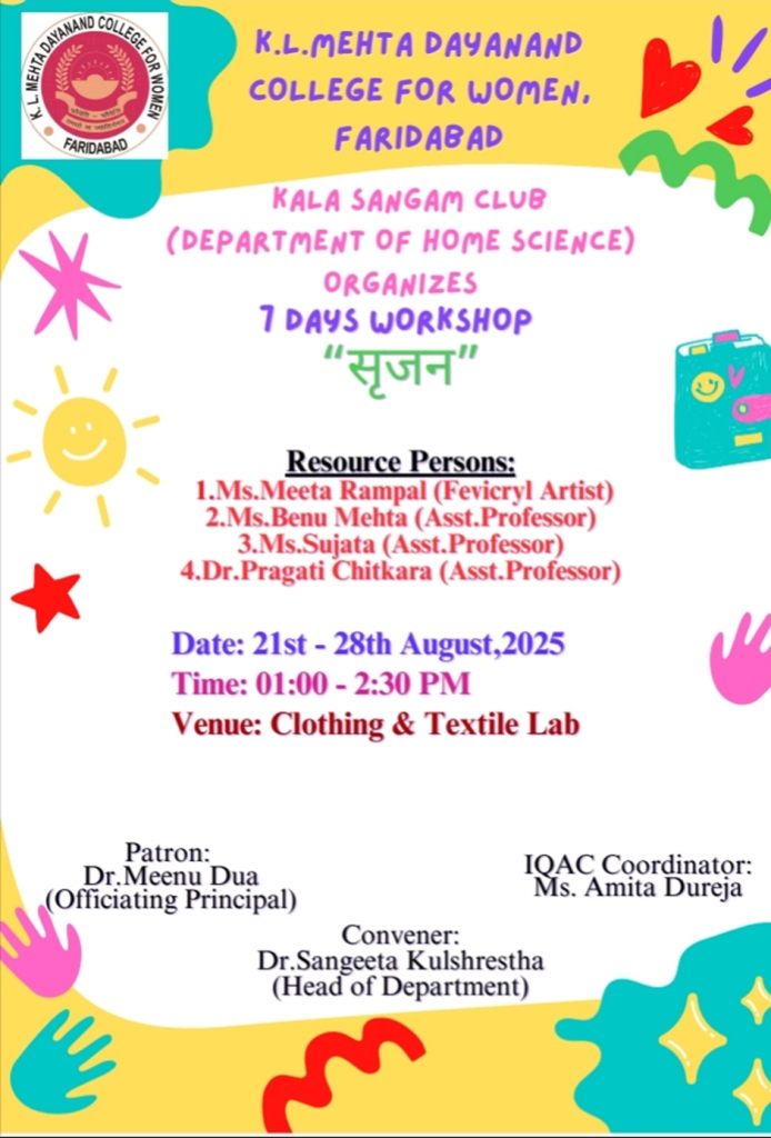 College : K.L. Mehta Dayanand College for Women, Faridabad Date : 11/09/2024 Event : Skill Enhancement workshop Club : Kala Sangam Club