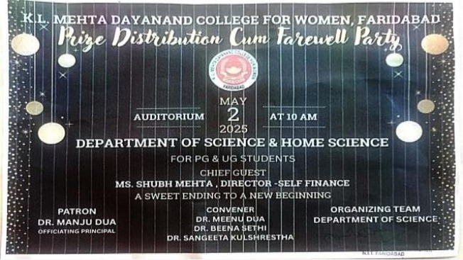 Farewell Party and Prize Distribution organized by Department of Science & Home Science on May 2, 2025.