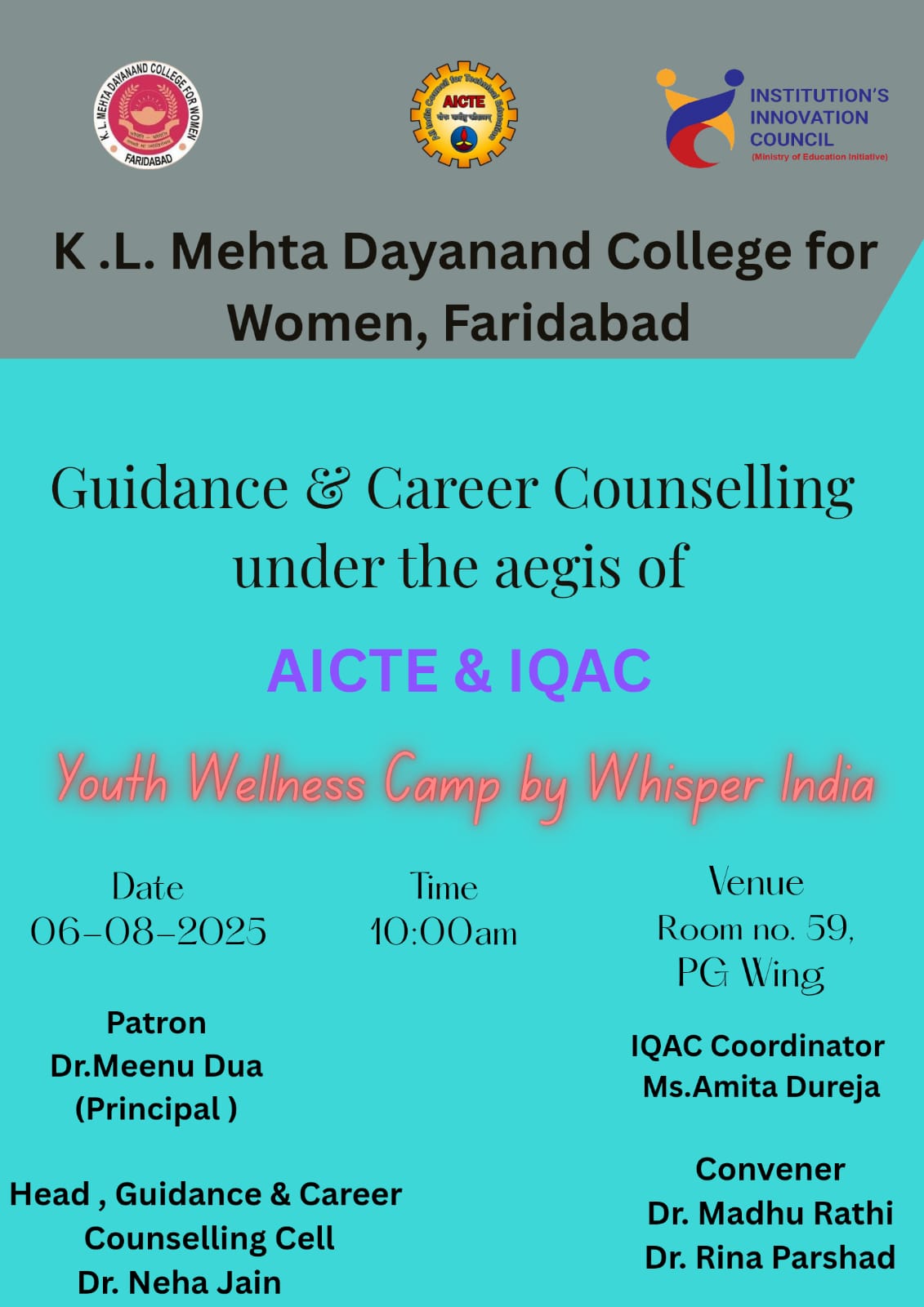 A Youth Wellness Campaign was conducted in collaboration with Whisper India, under the Guidance and Career Counseling Cell and the Internal Quality Assurance Cell (IQAC), supported by AICTE. on 06/08/2025