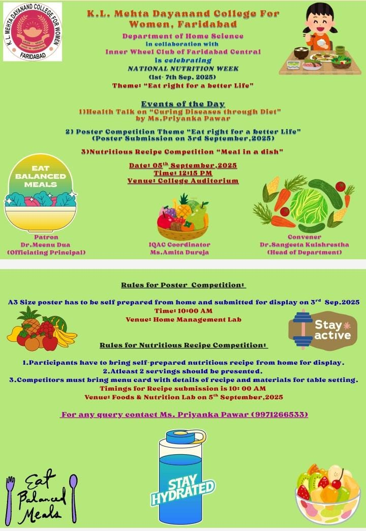 Department of Home Science in collaboration with the Inner Wheel Club of Faridabad Central, organized the celebration of National Nutrition Week on 7/9/25.