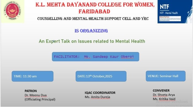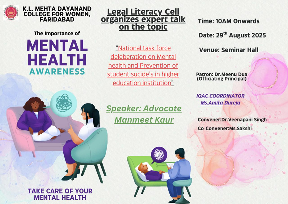 Legal Literacy Cell and IQAC, organized an Expert Talk on “Mental Health Awareness and Prevention of Student’s Suicide in Higher Education Institutions” on 29th August 2025
