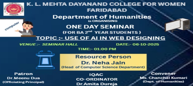 Department of Humanities organized a One-Day Seminar on “Use of AI in Web Designing” on 06-10-2025