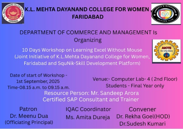 Department of Commerce and Management celebrated the culmination of its 10-day workshop on “Advance Excel Skills” with a closing ceremony on 12-9-2025. The workshop was taken by Mr. Sandeep Arora, a certified SAP and Advanced Excel consultant.