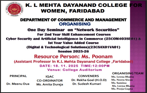 One-Day Seminar on “Network Security ” held on 18.11.2025 organized by Dept. of Commerce and Management.