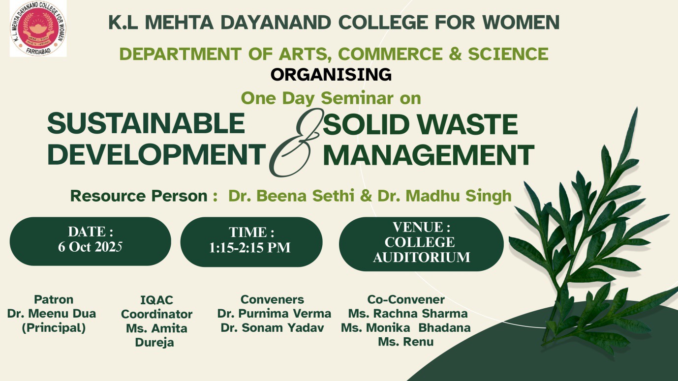 One-Day Seminar on “Sustainable Development and Solid & Waste Management” held on 06-10-2025 organized by Department of Arts, Commerce & Science