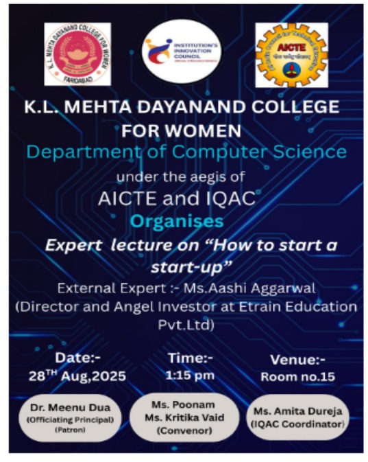 Expert Talk conducted by the Department of Computer Science under the aegis of AICTE and IQAC on the Topic: How to Start a Startup on 28th August 2025
