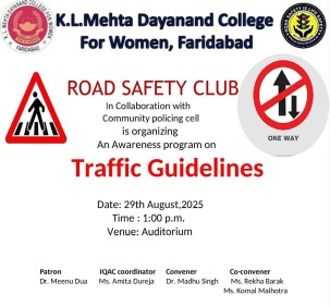 Road Safety Club of College in collaboration with Community Policing Cell organised an awareness program on “Traffic Guidelines” on 29th August 2025