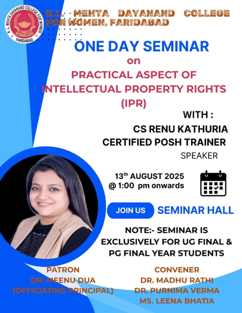 The IPR Cell organized a one-day seminar on “Practical aspect of Intellectual Property Rights” on 13th August 2025.