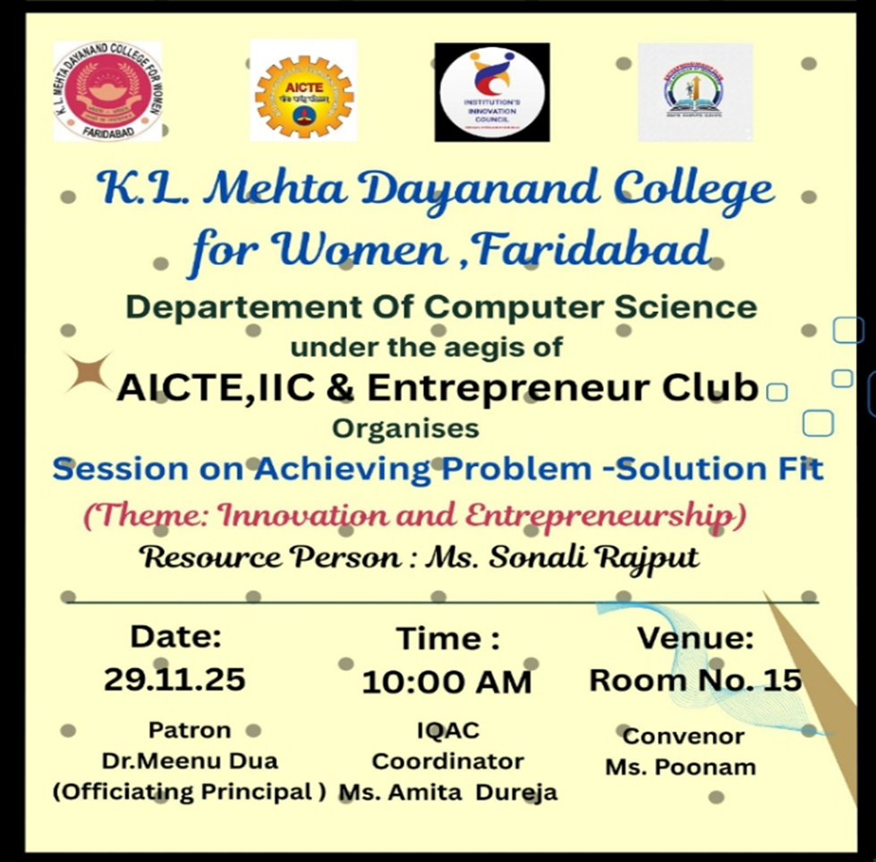 Session on Achieving Problem Solving Fit conducted by the Department of Computer Science under the aegis of AICTE, IIC and Entrepreneurship Club on 29 November 2025