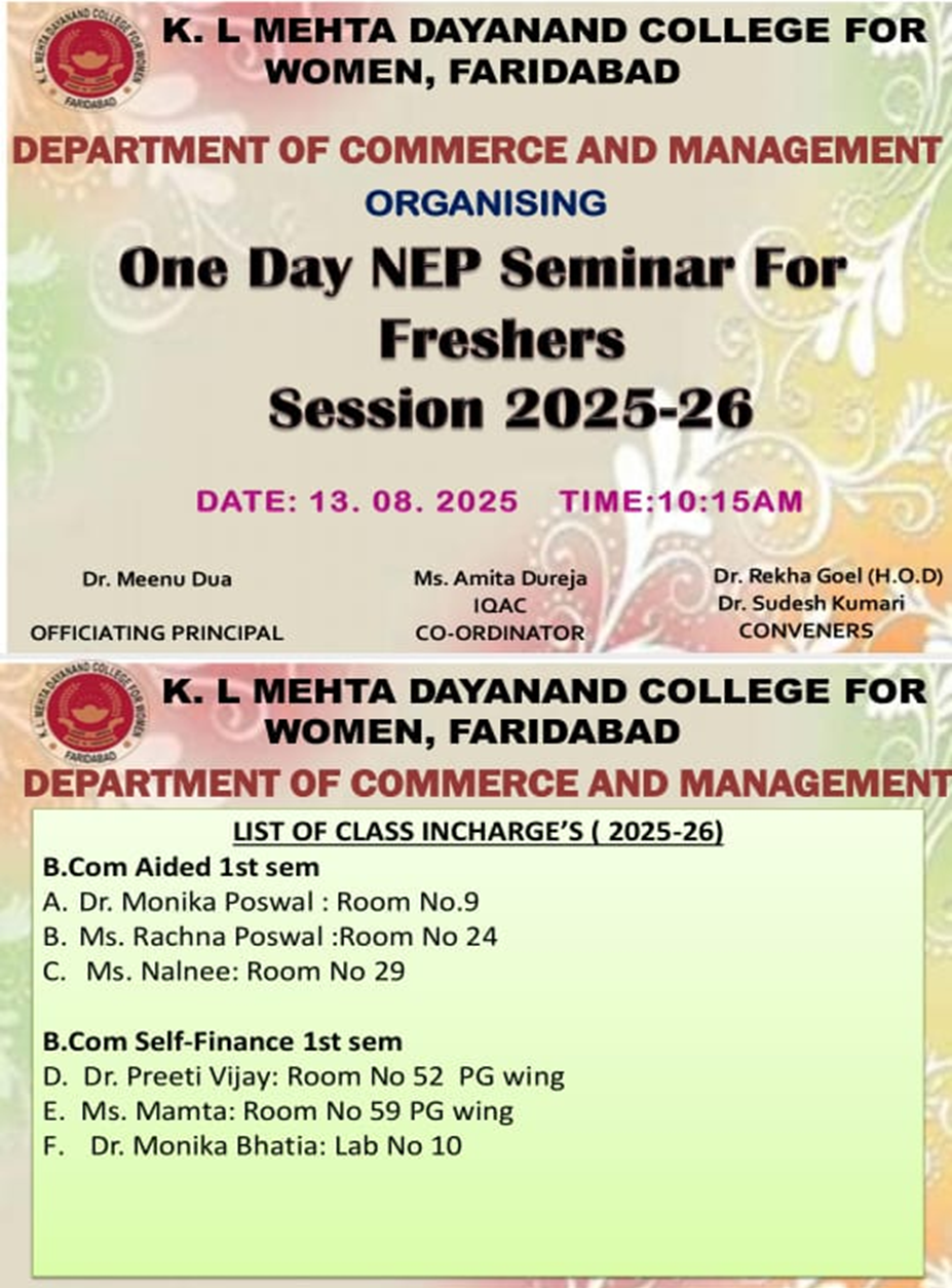 The one day NEP seminar for the first-year students was conducted by Department of Commerce on 13th August 2025