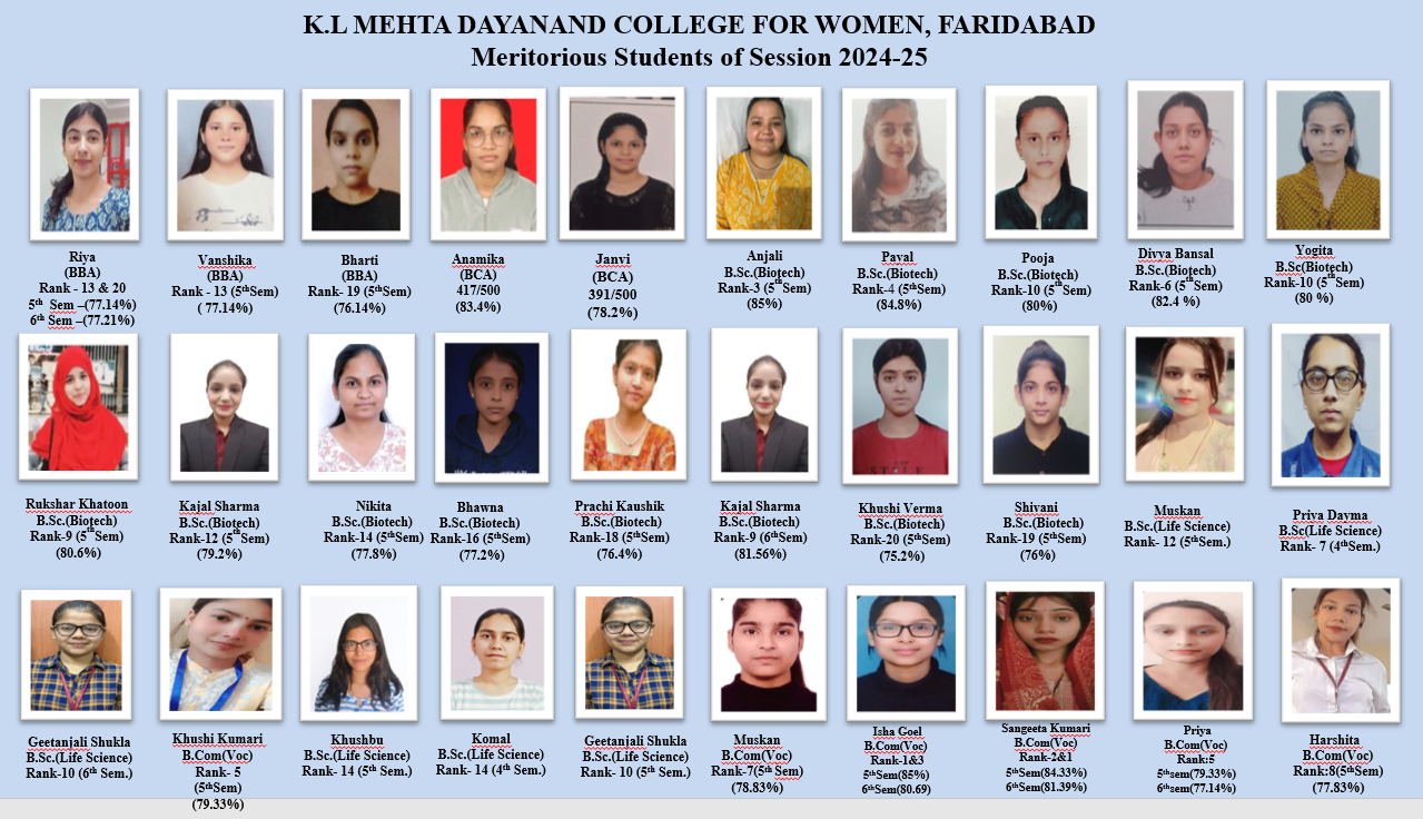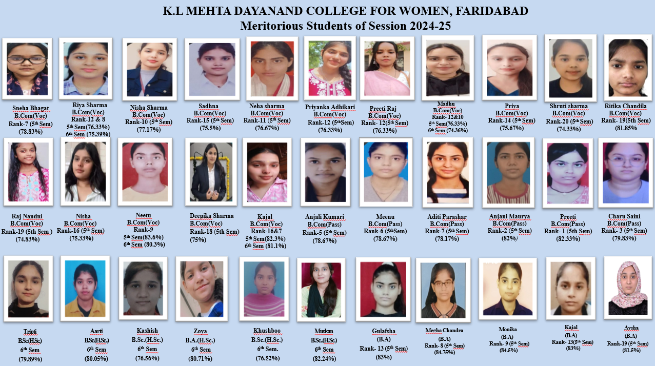 K. L. Mehta Dayanand College for Women, established in 1970, is a pioneer and one of the leading women educational institutions in Faridabad. The college is named after its founder Sh. K.L. Mehta, a dedicated social activist and staunch Arya Samajist. The College is running through Maharishi Dayanand Educational Society – A beacon light for spreading of education in Faridabad. The College has become the pride in the field of girls’ education.